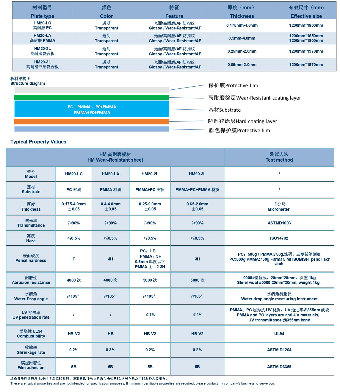 HM20-LC 高耐磨PC优点耐钢丝绒、AF防指纹、抗冲击、韧性好, 可应用于对硬度要求较低的产品,如功能机镜片、小家电面板、防护眼镜、安防面板和电梯户外广告牌等