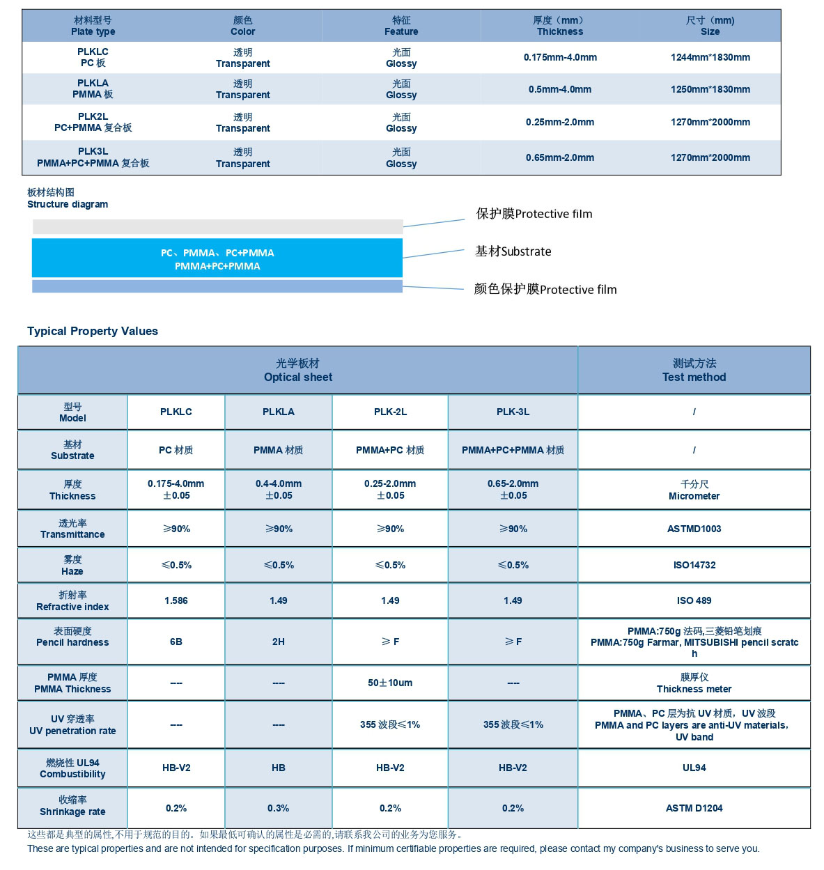 PLK-2L 二层复合板材料优点硬度高且抗冲击性能强,可应用于对硬度抗冲击均有要求的产品,例如手机电池盖、电子书触摸镜片及电池盖等